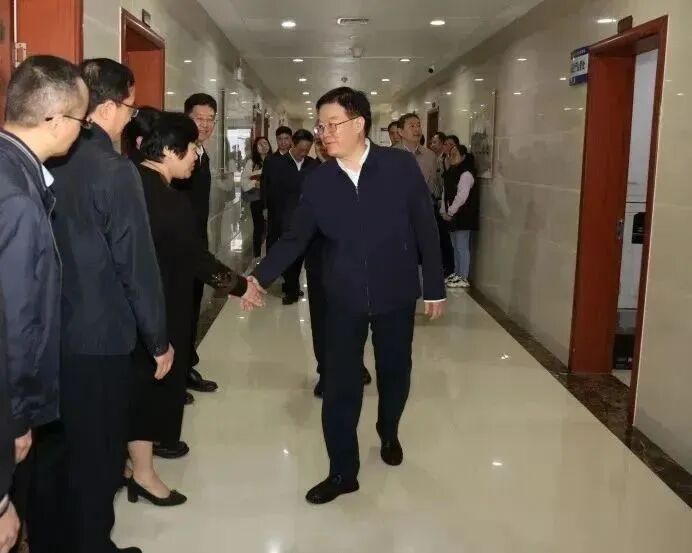 与干部职工亲切握手